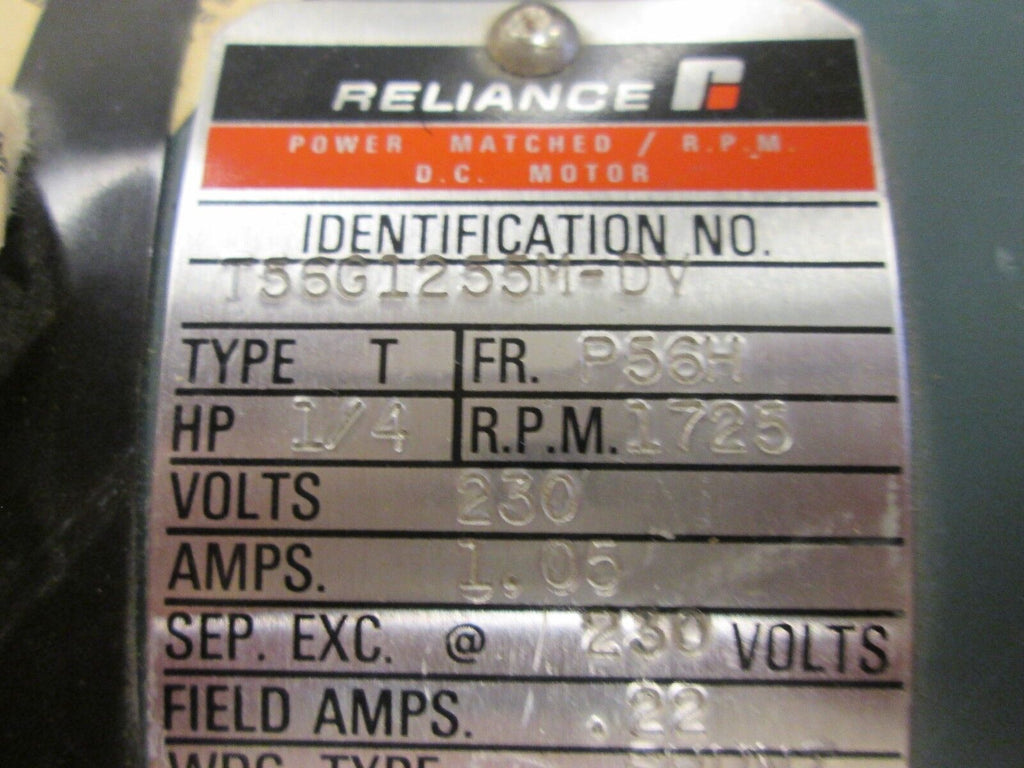 Reliance Electric DC Motor T56G1255M-DV 1/4HP 1725 RPM 230V 1.05A New Surplus