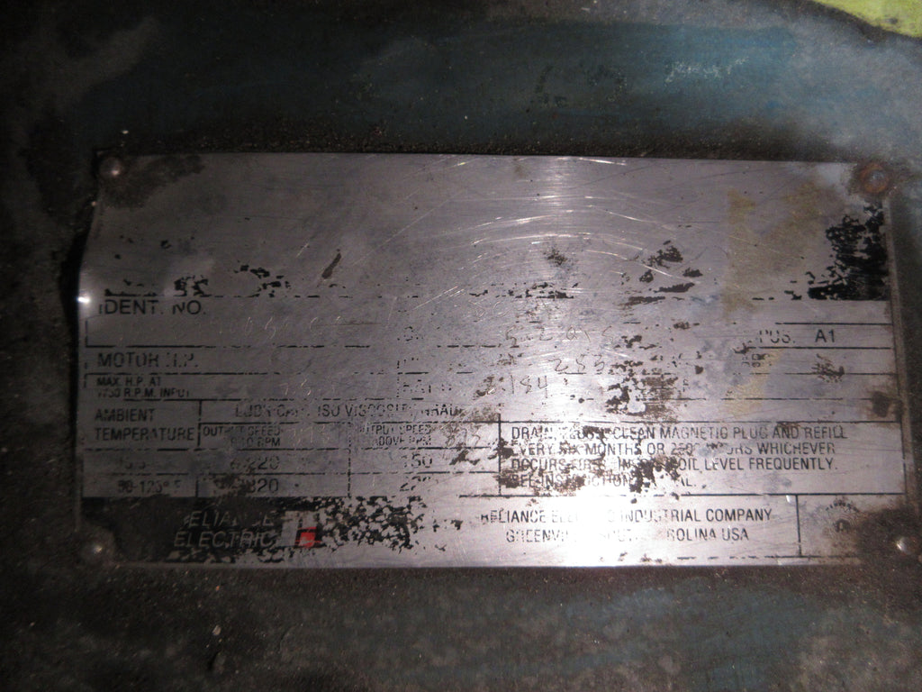 Reliance Electric Motor 15 299005 CC 25HP 283 RPM Ratio: 6.184 Used