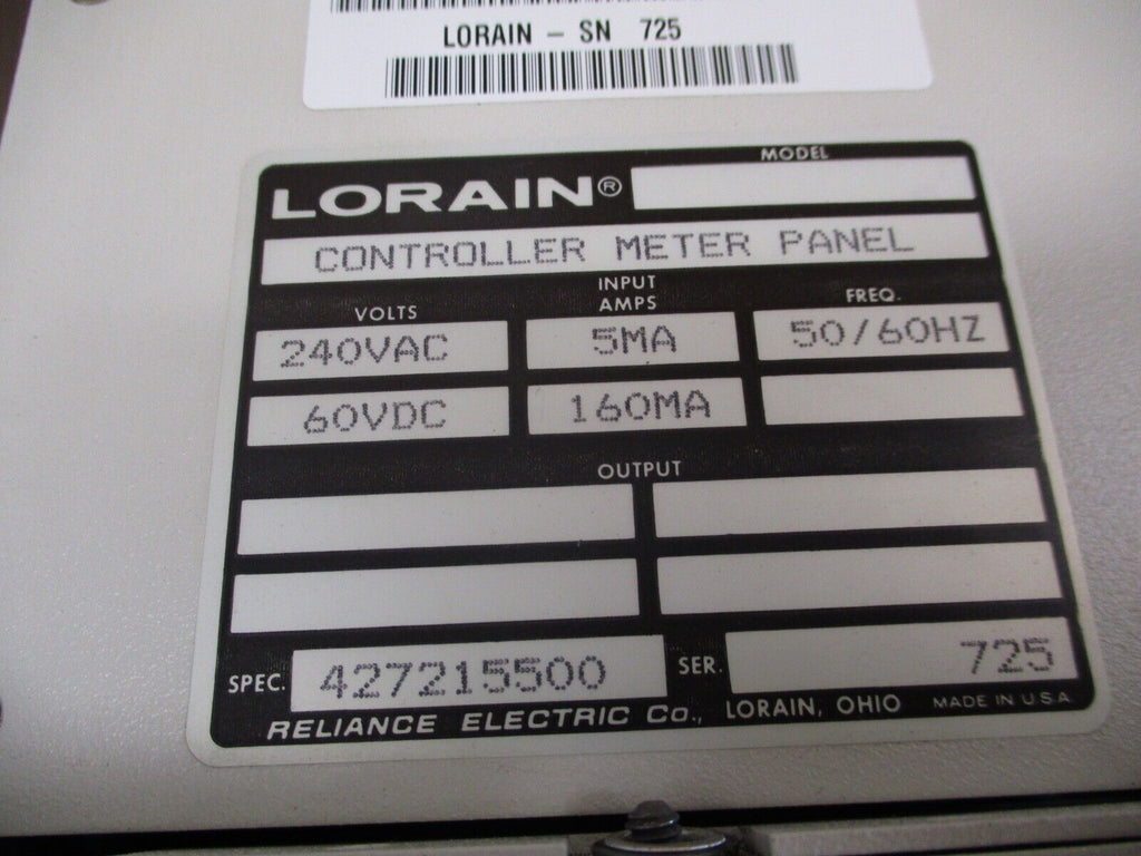 Reliance Lorian Controller Meter Panel 427215500 240VAC 5mA 60VDC 160mA Used