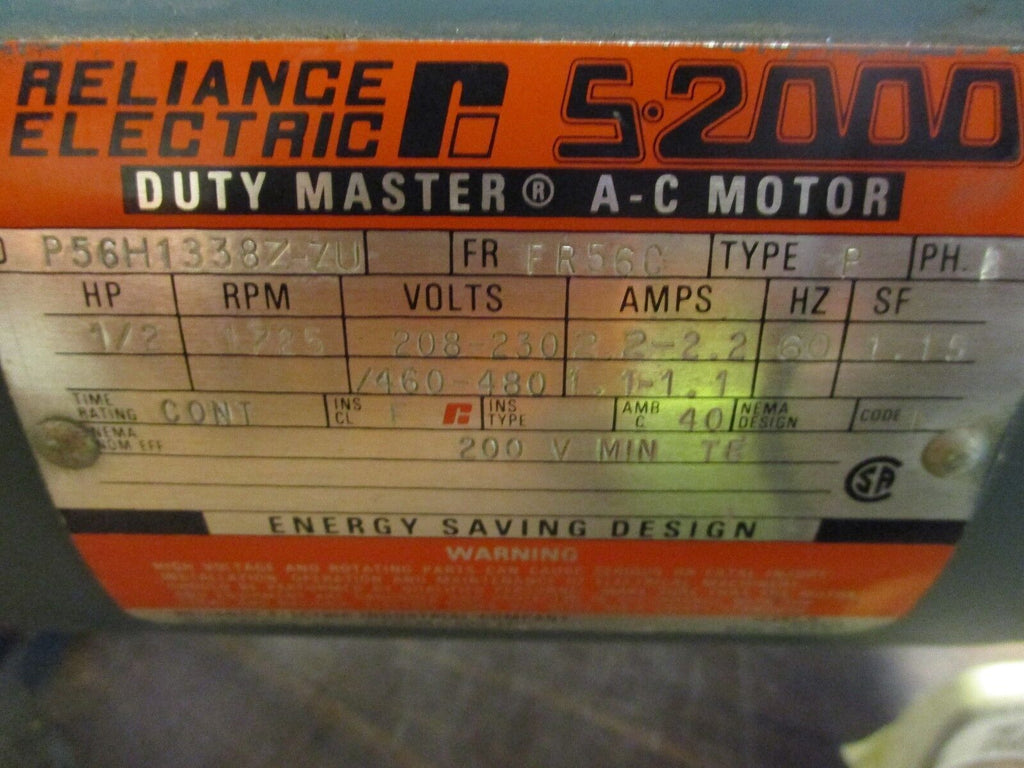 Reliance Motor w/ Gear P56H1338Z-ZU 1/2HP 1800RPM FR:FR56C 208-230/460-480V Used_x000D_ Condition: UsedMPN: P56H1338Z-ZUBrand: Reliance Electric Reliance Motor w/ Gear P56H1338Z-ZU 1/2HP 1800RPM FR:FR56C 208-230/460-480V Used Reliance Motor w/ Gear Part #: P56H1338Z-ZU 1/2HP 1725RPM Frame: FR56C 208-230/460-480V 2.2/1.1AUsedLOC AB11-543 / AB3M3 Reliance Motor w/ Gear Part #: P56H1338Z-ZU 1/2HP 1725RPM Frame: FR56C 208-230/460-480V 2.2/1.1A Uséd LOC AB11-543 / AB3M3