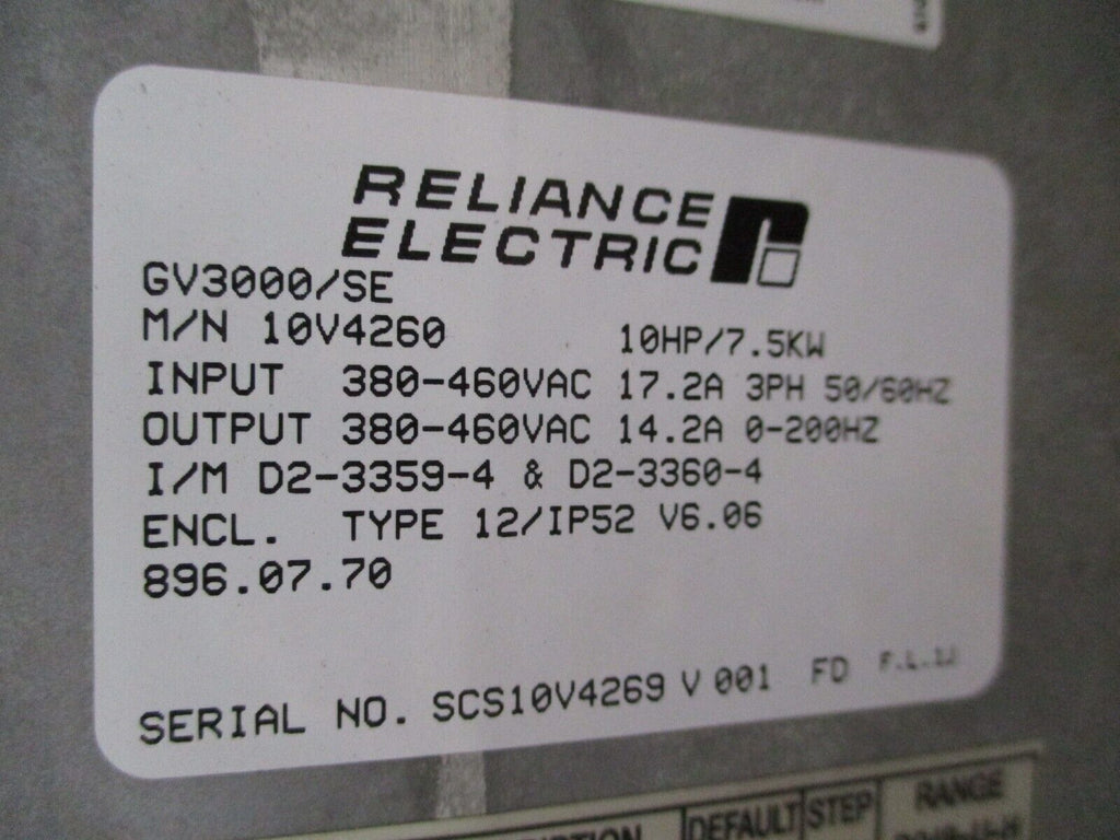 Reliance VTAC 7 AC Drive 10H4260 10HP 3Ph Type 12 Enclosure Used Condition: UsedBrand: RelianceType: General Purpose AC DriveMaximum Load: 10 HPMPN: 10H4260Input Voltage: 460 V Reliance VTAC 7 AC Drive 10H4260 10HP 3Ph Type 12 Enclosure Used Reliance VTAC 7 AC Drive Part #: 10H4260 10 HP 3Ph Input:380-460 VAC17.2 A50/60 HzOutput:380-460 VAC14.2 A0-200 HzType 12 Enclosure Used Loc: AB11-5191 / AB41J4 Reliance VTAC 7 AC Drive Part #: 10H4260 10 HP 3Ph Input: 380-460 VAC 17.2 A 50/60 Hz Output: 380-460 VAC 14.2 A 0-200 Hz Type 12 Enclosure Uséd Loc: AB11-5191 / AB41J4