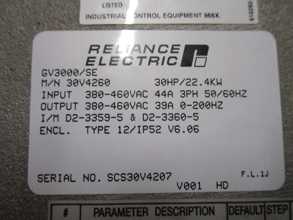 Reliance VTAC 7 GV3000/SE AC Drive 30V4260 30HP Used_x000D_ Condition: UsedBrand: RelianceType: General Purpose AC DriveMaximum Load: 30 HPMPN: 30V4260Input Voltage: 380-460 V Reliance VTAC 7 GV3000/SE AC Drive 30V4260 30HP Used Reliance VTAC 7 GV3000/ SE AC Drive Part # 30V4260 30HP Inputs: 380-460 VAC, 44A, 50/60HzOutputs: 380-460 VAC, 39A, 0-200Hz UsedLOC AB4H1-10 / AB11-4991 / AB7C3 / AB37H2 / AB36G2 Reliance VTAC 7 GV3000/ SE AC Drive Part # 30V4260 30HP Inputs: 380-460 VAC, 44A, 50/60Hz Outputs: 380-460 VAC, 39A, 0-200Hz Uséd LOC AB4H1-10 / AB11-4991 / AB7C3 / AB37H2 / AB36G2