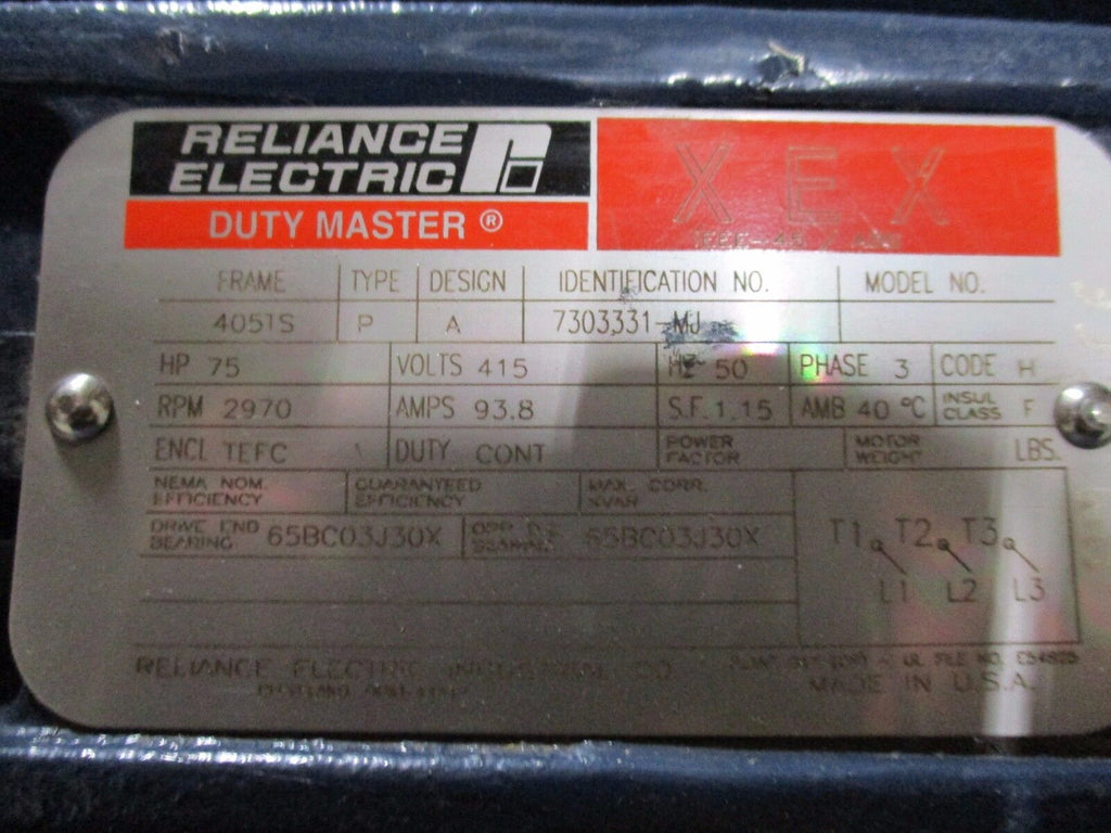 Reliance XEX Duty Master 50Hz AC Motor 75HP 2970RPM 415V 405TS Frame 50Hz Used