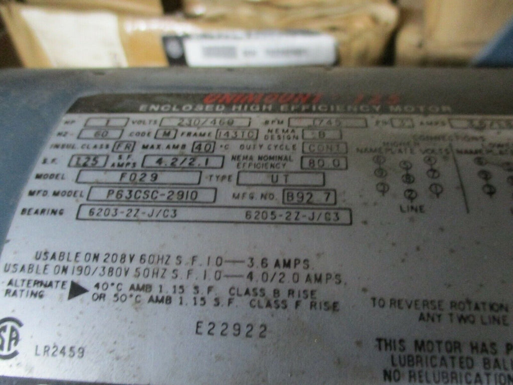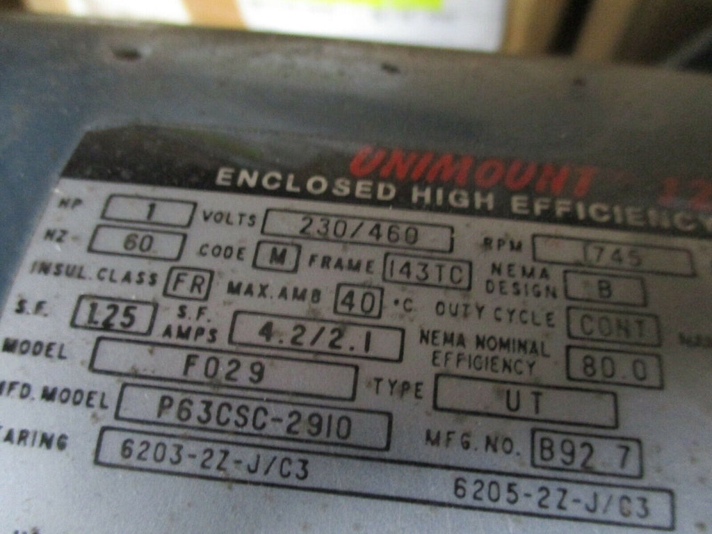 Rexnord Gearmotor 2947Y129-K Ratio: 130.4 13.4RPM Out 1HP 143T...