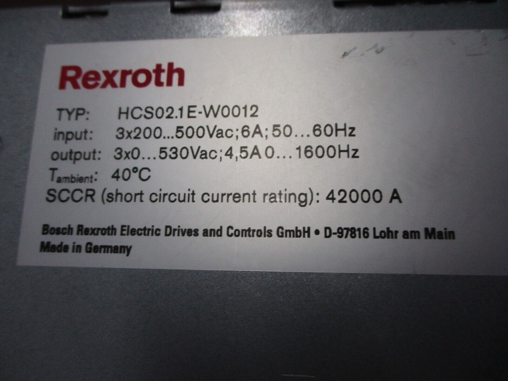 Rexroth IndraDrive Servo Drive HCS02.1E-W0012 3Ph Used_x000D_ Condition: UsedBrand: RexrothMPN: HCS02.1E-W0012Number Of Phases: 3-PhaseType: Servo Drive Rexroth IndraDrive Servo Drive HCS02.1E-W0012 3Ph Used Rexroth IndraDrive Servo Drive Part #: HCS02.1E-W0012 3Ph Input:3x200...500 VAC 6 A50...60 Hz Output:3x0...530 VAC4,5A0...1600HzUsed Loc: AB11-4671 / AB7E2 Rexroth IndraDrive Servo Drive Part #: HCS02.1E-W0012 3Ph Input: 3x200...500 VAC 6 A 50...60 Hz Output: 3x0...530 VAC 4,5A 0...1600Hz Uséd Loc: AB11-4671 / AB7E2