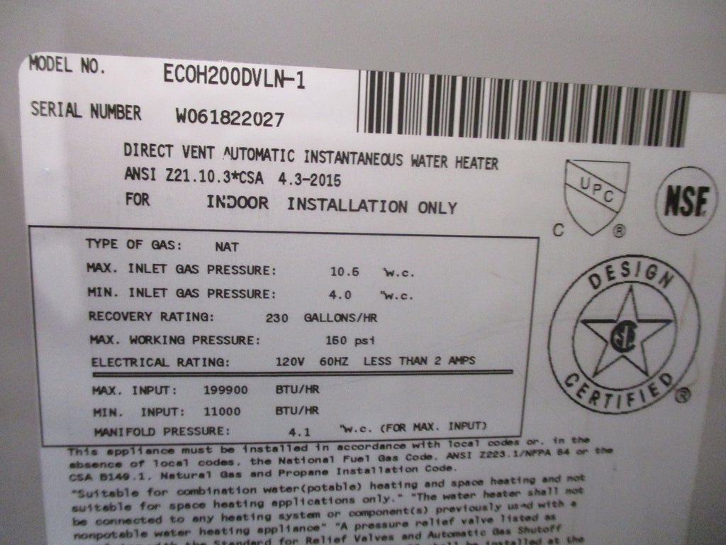 Rheem Performance Platinum Tankless Water Heater ECOH200DVLN-1 230 Gal/Hr 120V