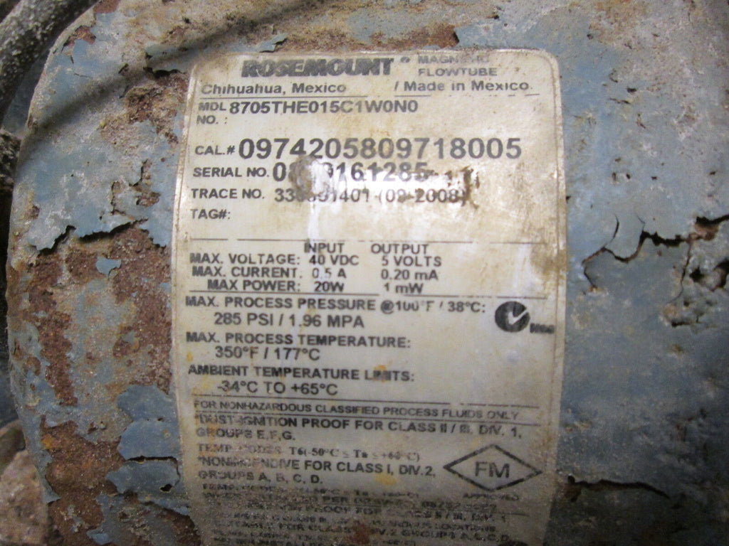 Rosemount Magnetic Flowtube 8705THE015C1W0N0 285PSI Used Condi...