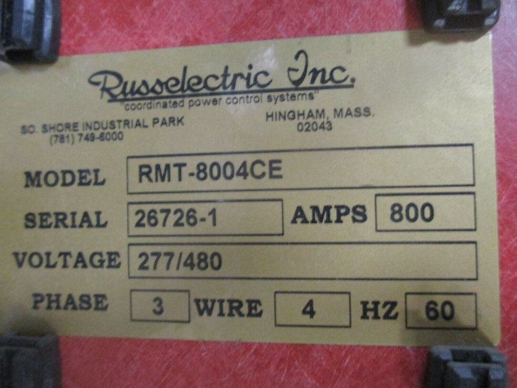 Russelectric Automatic Transfer Switch RMT-8004CE 800A 277/480V 60Hz 3Ph 4W Used