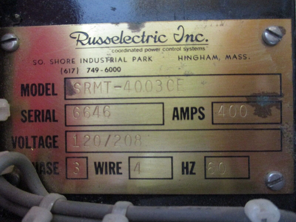 Russelectric Automatic Transfer Switch SRMT-4003CE 400A 120/208V 3Ph 4W 60Hz