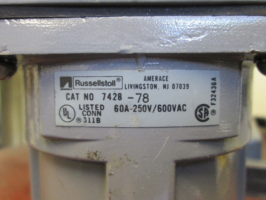 Russellstoll Connector 7428-78 60A 600V 4W Open End Used Condi...