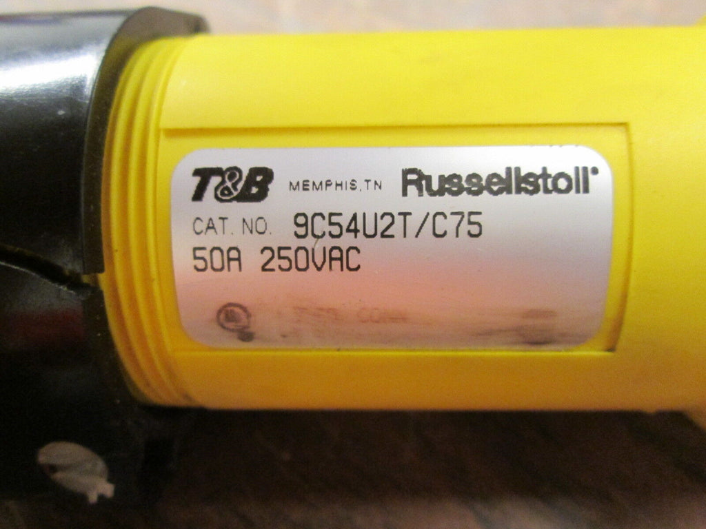 Russellstoll Connector 9C54U2T/C75 50A 250V 3P 4W *Cracked End* Used