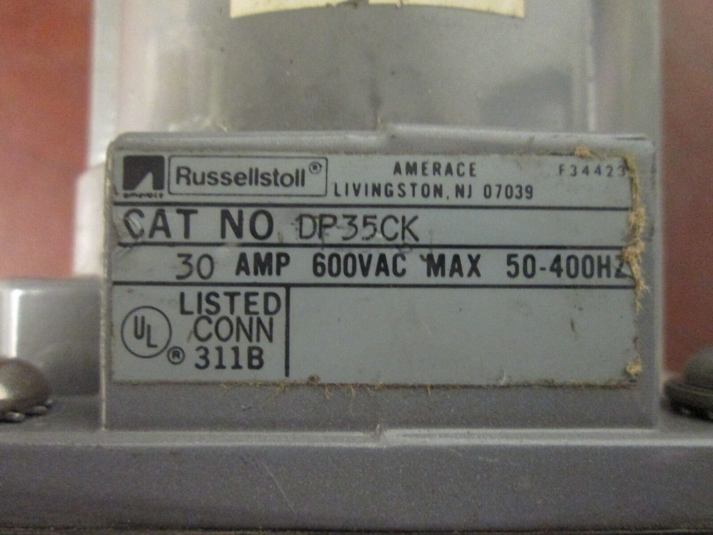 Russellstoll Connector DP35CK 30A 600V 50-400Hz 4W Used...