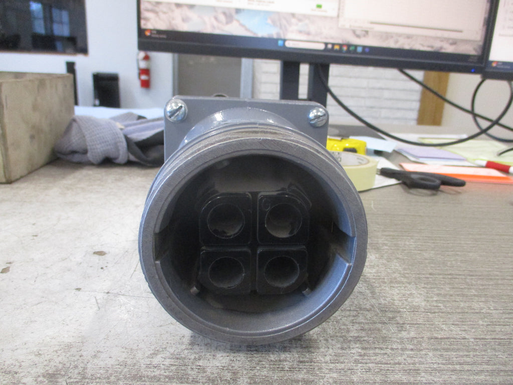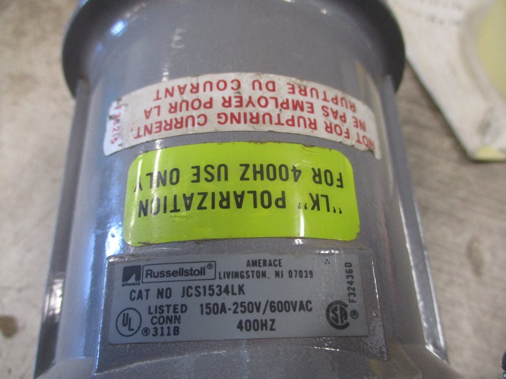 RussellStoll Connector JCS1534LK 150A 250V 600VAC 400Hz 3P 4W W/Conduit End *Missing Cap* Used LOC 58J5-5