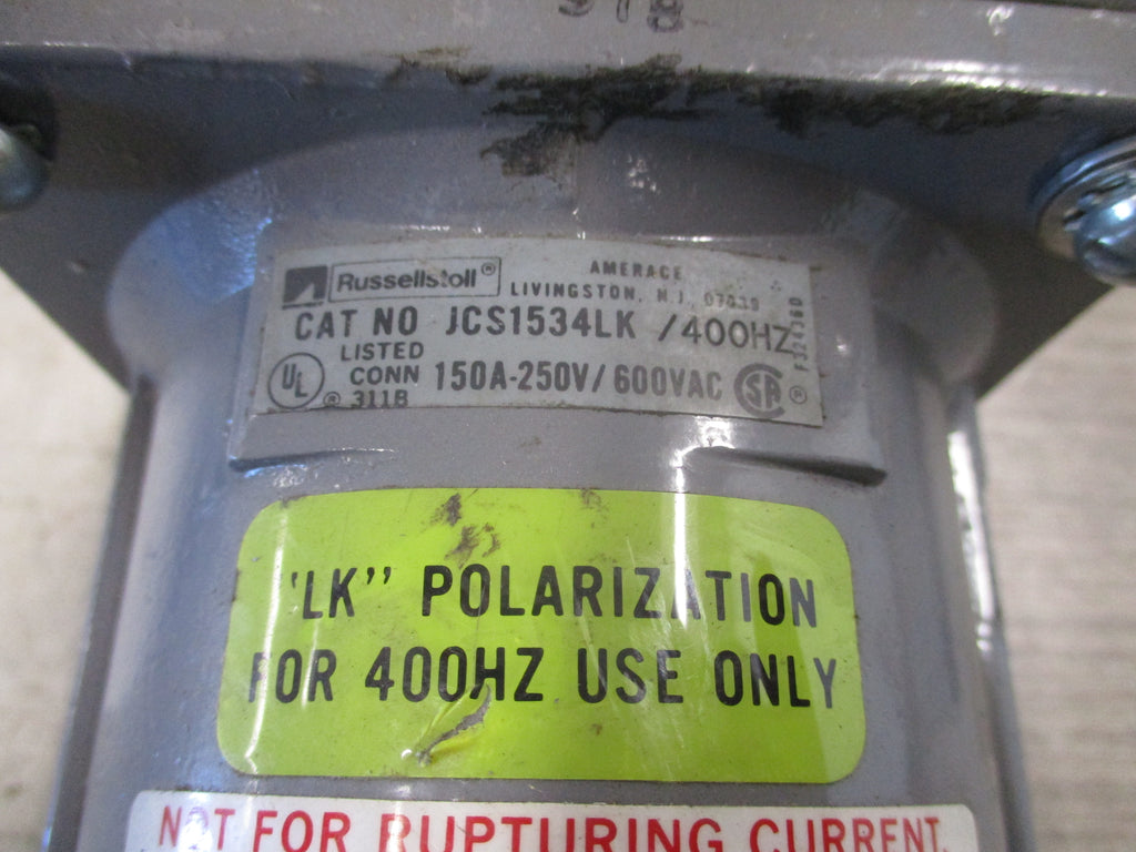 RussellStoll Connector JCS1534LK 150A 250V 600VAC 400Hz 3P 4W *Missing Wire Clamps* Used LOC 58J5-4
