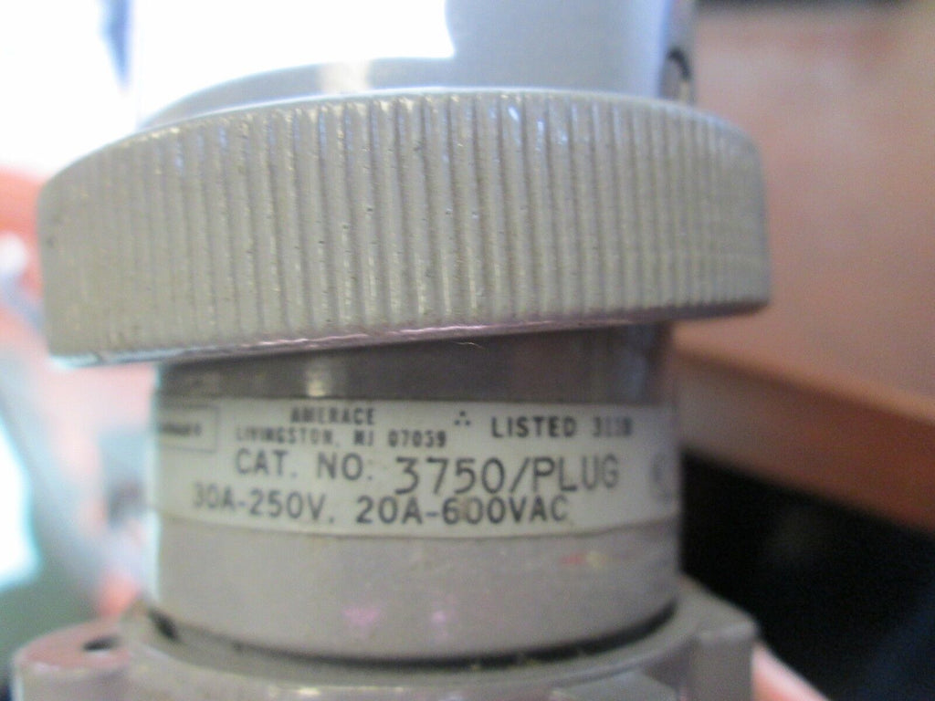 Russellstoll Plug Part #: 3750 30A@250V 20A@600V 3W Used Loc: 58K4-15