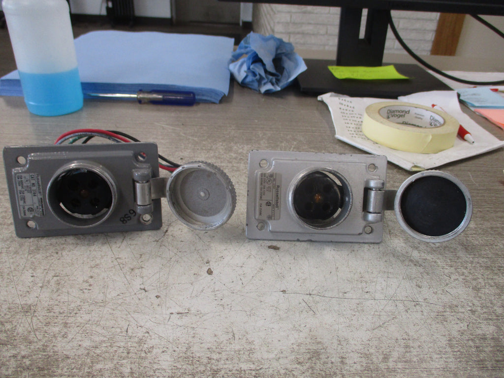 Russellstoll Receptacle Part # 3744 20A @ 125V 15A @ 250V 10A @ 600V 3P 4W *Lot of 2* Used LOC: 57J4-27
