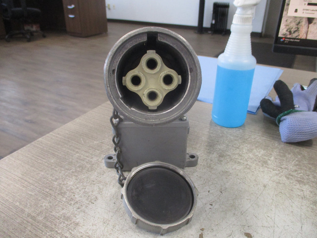 RussellStoll Receptacle 7428-78 60A 600V 3P 4W W/Body & Angle Adapter Used LOC 59K1-4