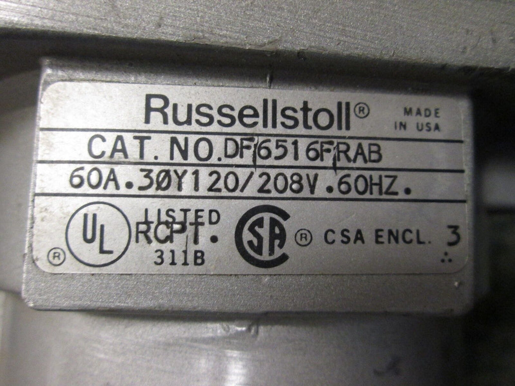 Russellstoll Receptacle DF6516FRAB 60A 120/208V 3Ph Used LOC CR4B8-1