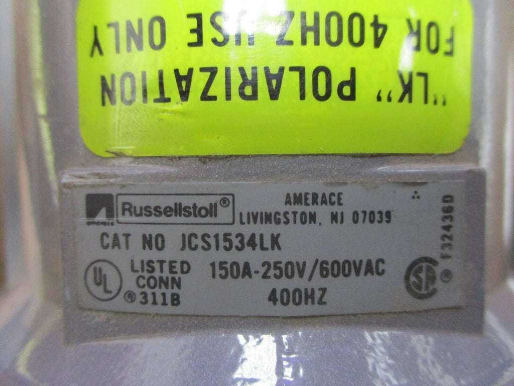 RussellStoll Receptacle JCS1534LK 150A 600V 400Hz 3P 4W Used C...