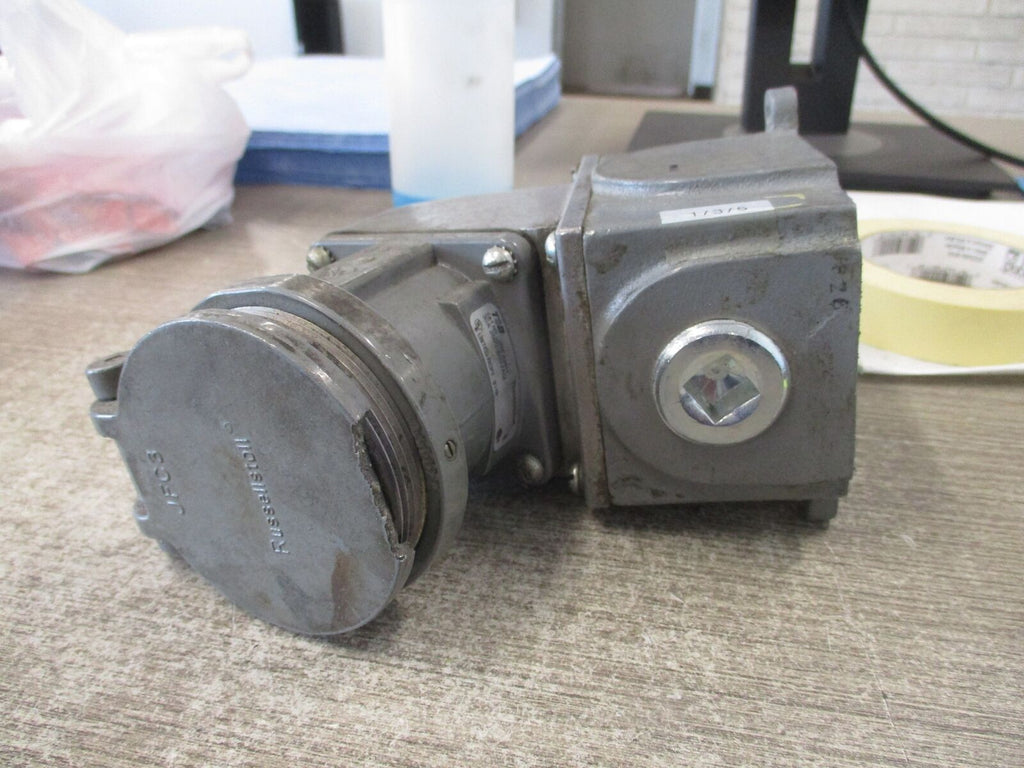Russellstoll Receptacle JRF334H 30A 250/600V W/Base & Angle Adapter * Cover Chipped * Used_x000D_ Russellstoll Receptacle JRF334H 30A 250/600V W/Base & Angle Adapter * Cover Chipped * Used LOC 57J4-6