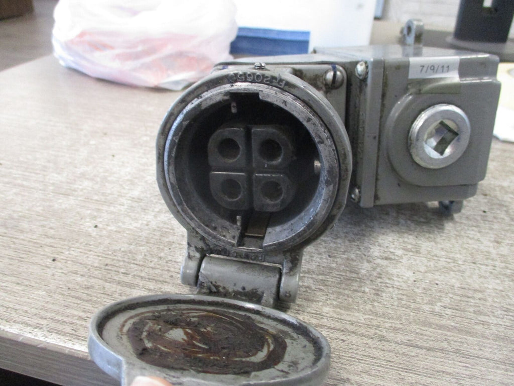 Russellstoll Receptacle JRFA334H 30A 250/600V W/Base & Angle Adapter Used_x000D_ Russellstoll Receptacle JRFA334H 30A 250/600V W/Base & Angle Adapter Used LOC 57J2-2