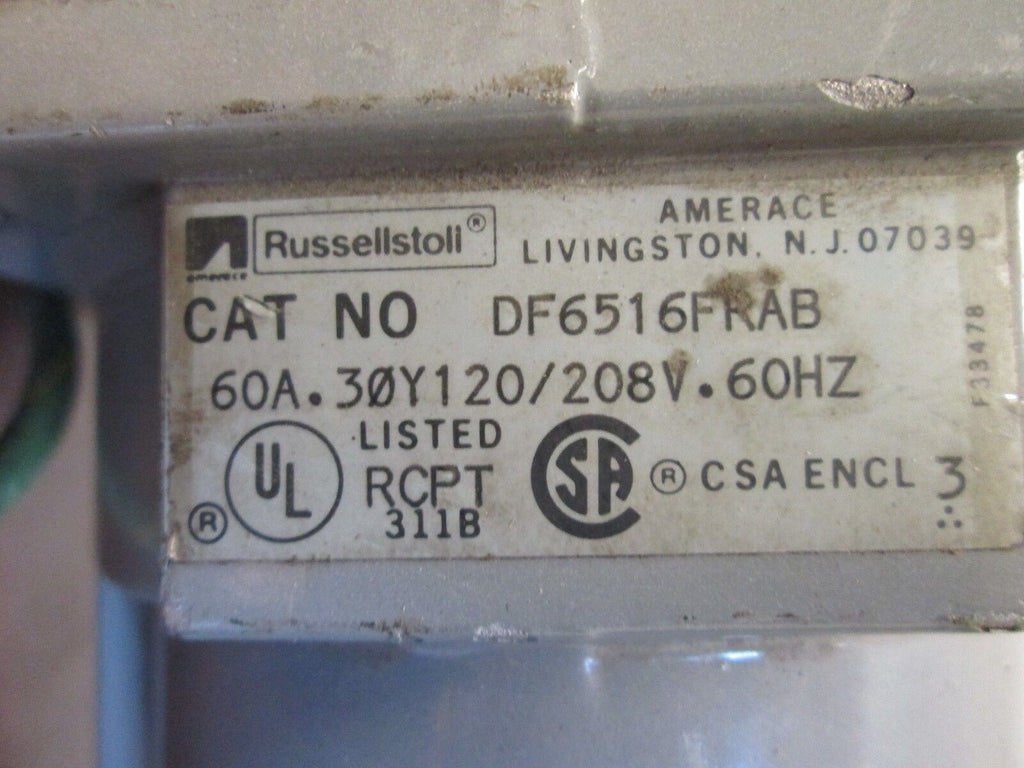 Russellstoll Receptacle w/Angle Adapter DF6516FRAB 60A 120/208V 5W Used