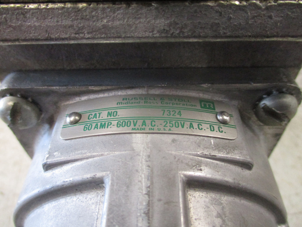 Russelstoll Receptacle w/Base 7324 60A 600V 3P 4W *Missing (1) Screw* *No Cover* Used LOC 59J4-7