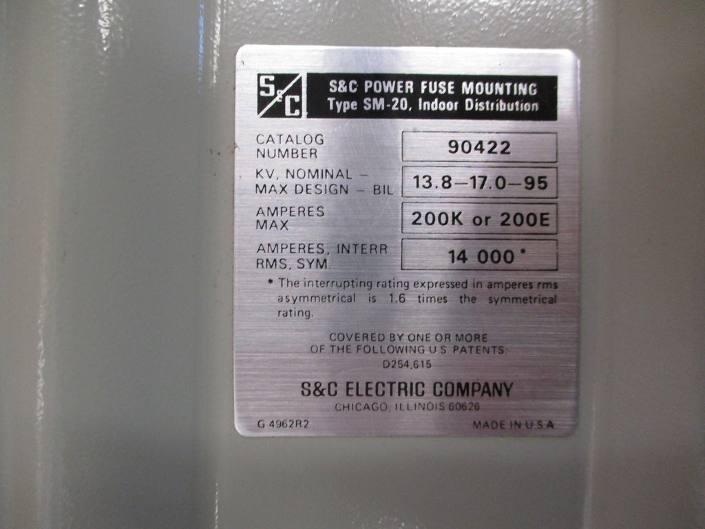 S&C SM-20 Fuse Mount w/ Fuse 90422 150E Fuse Used