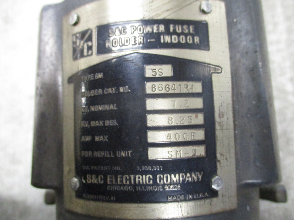 S&C Type SM-5S Fuse Holder 86641R1 7.2KV 400E Max 300E Refill Used LOC FS1D6-25