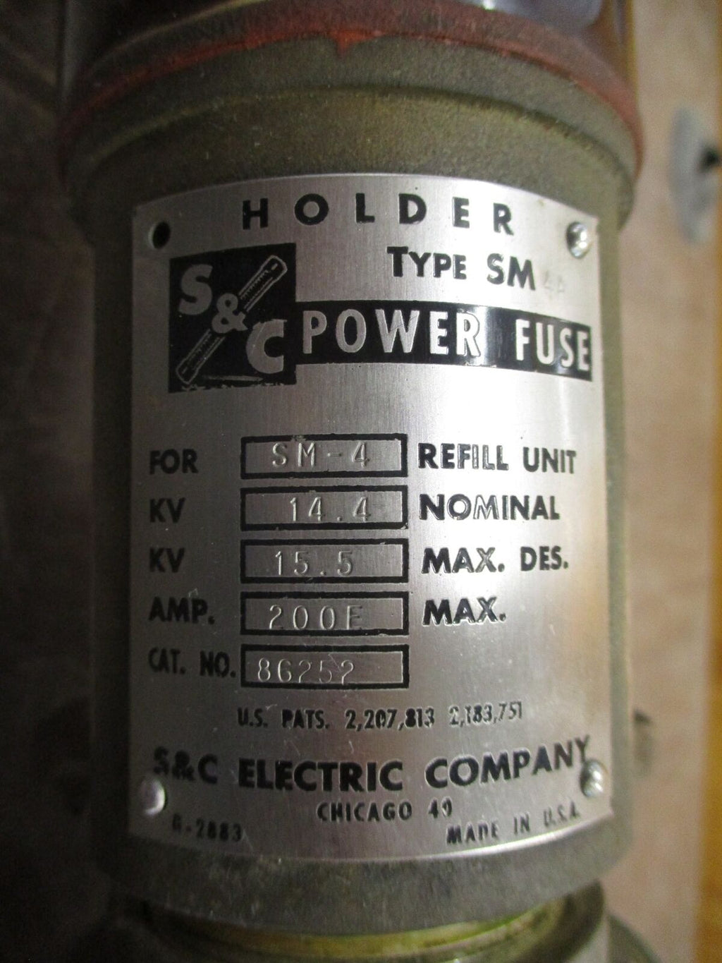 S&C Type SM4A Fuse Holder 86252 14.4kV 200E Max 100E Refill Used_x000D_ S&C Type SM4A Fuse Holder Part #: 86252 14.4 kV 200 E Max 100 E Refill Used Loc: FS1B1-11