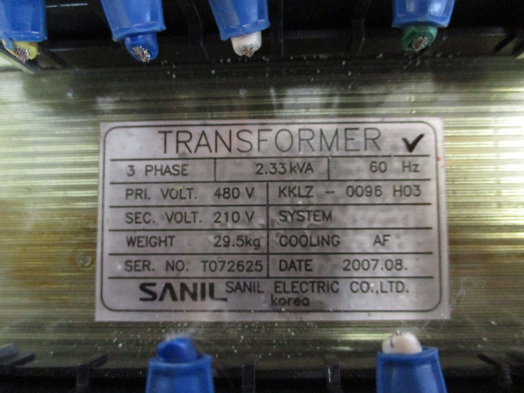 Sanil Transformer KKLZ-0096 H03 2.33kVA Pri: 480V Sec: 210V 3P...