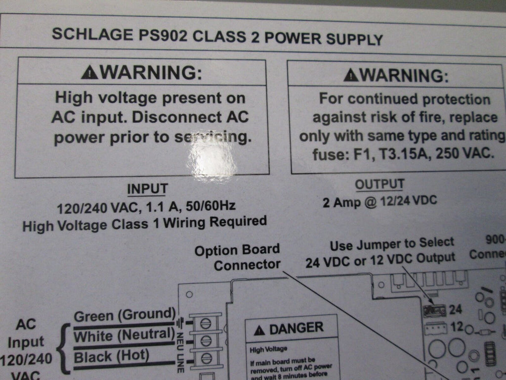 Schlage Power Supply PS902 120/240V Input 12/24VDC 2A Output *Some Shelfwear*
