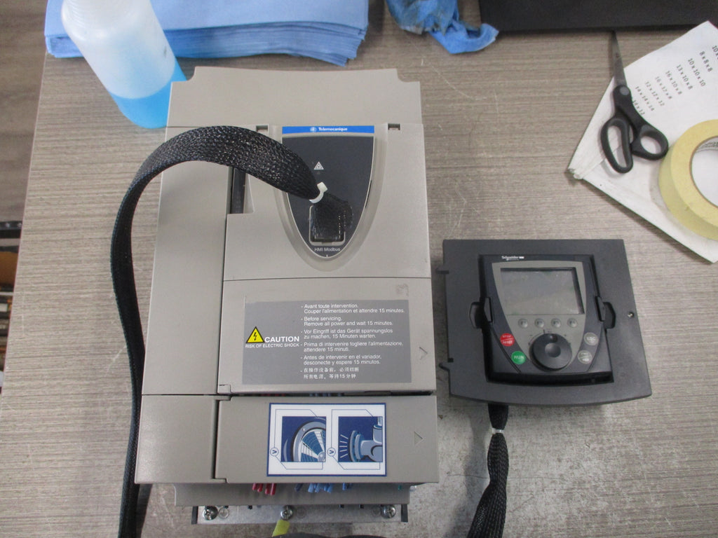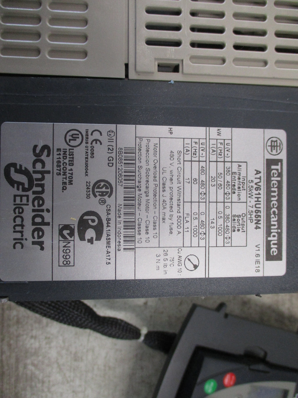 Schneider Electric AC Drive ATV61HU55N4 7.5HP 3Ph Input: 380-480V 50/60Hz 20.3A Output: 0_380-480V 0.5-1000Hz 14.3A W/Keypad &External Mount Used LOC 58B5-9