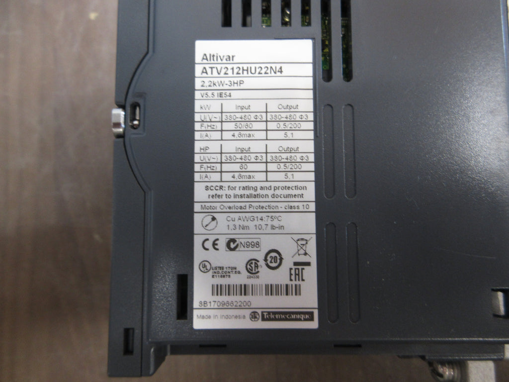 Schneider Electric Altivar AC Drive Part #: ATV212HU22N4 3 HP 3Ph Input: 380-480 V 60 Hz 4.6 A Max Output: 380-480 V 0.5/200 Hz 5.1 A Used Loc: 57B2-19