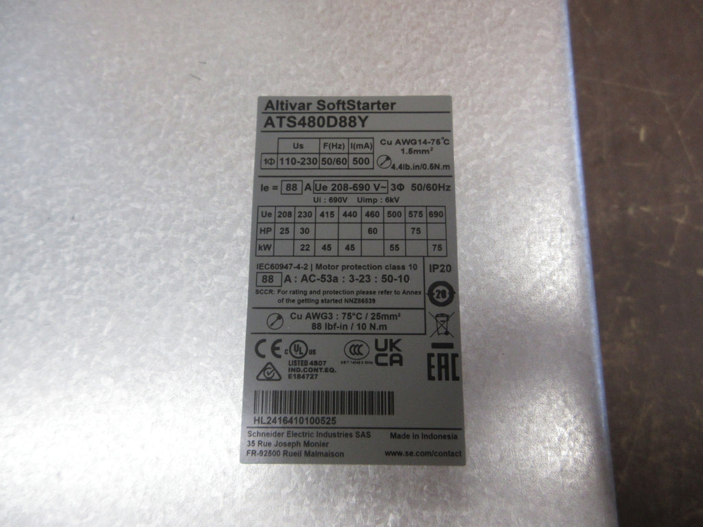 Schneider Electric Altivar Soft Start Part #: ATS480D88Y 208...
