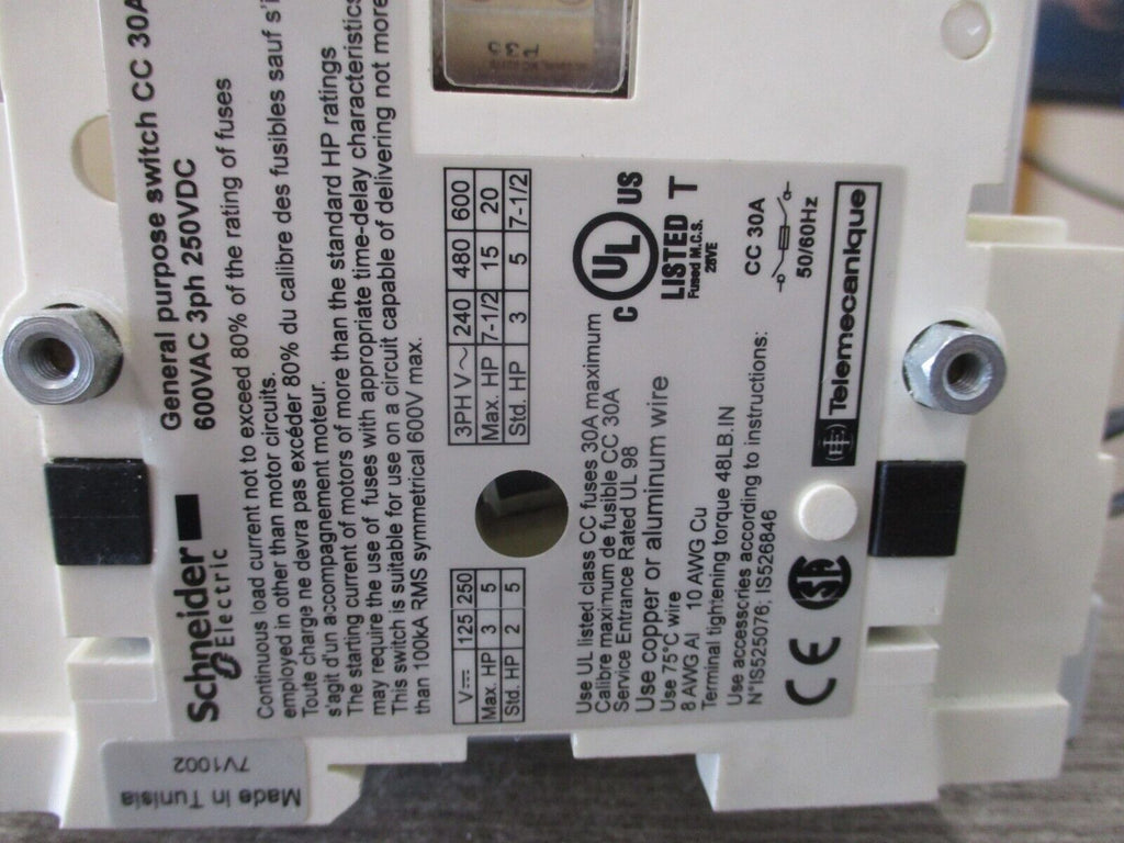 Schneider Electric Fusible General Purpose Switch GS1EERU30 30A 600V 3P Used