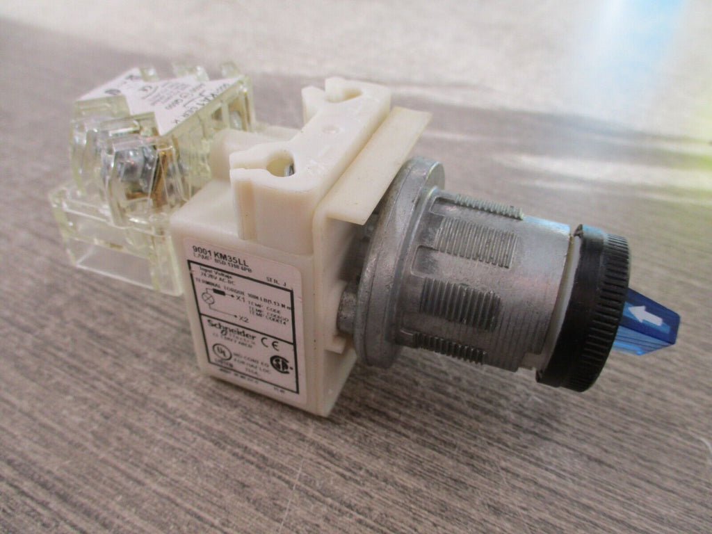 Condition: UsedBrand: Schneider ElectricColor: BlueFuse Type: SwitchFeatures: IlluminatedMPN: 9001 KM35LLSchneider Electric Illuminated Selector Switch Part #: 9001 KM35LL Ser. J Blue Used LOC: 29B4-23You may also like