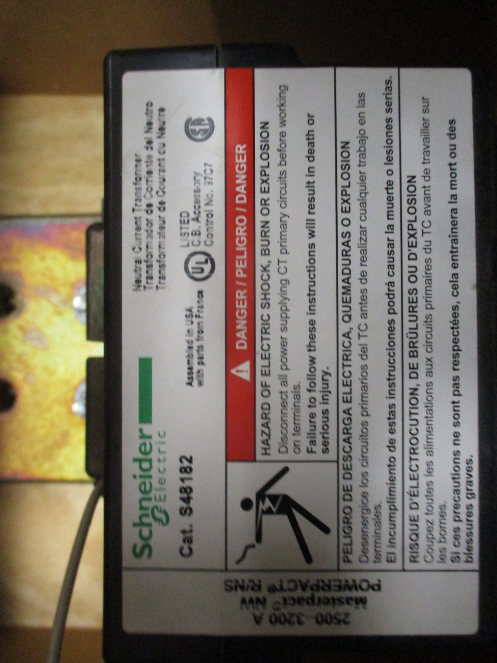 Schneider Electric Masterpact/PowerPact Neutral Current Transformer S48182 3000A New Surplus
