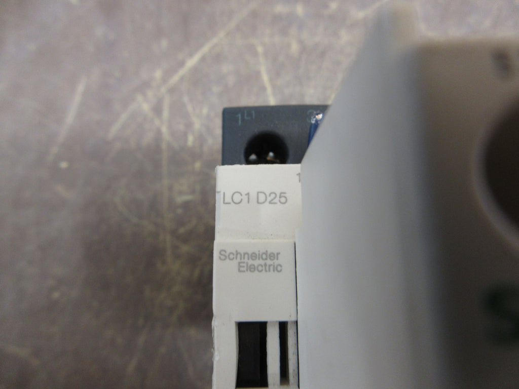 Schneider Electric Reversing Starter Part #: LC1 D25 / LRD 08 120V Coil Trip: 2.5-4A (2) Aux Contact Blocks w/ Surge Suppressor Used Loc: 57A5-22