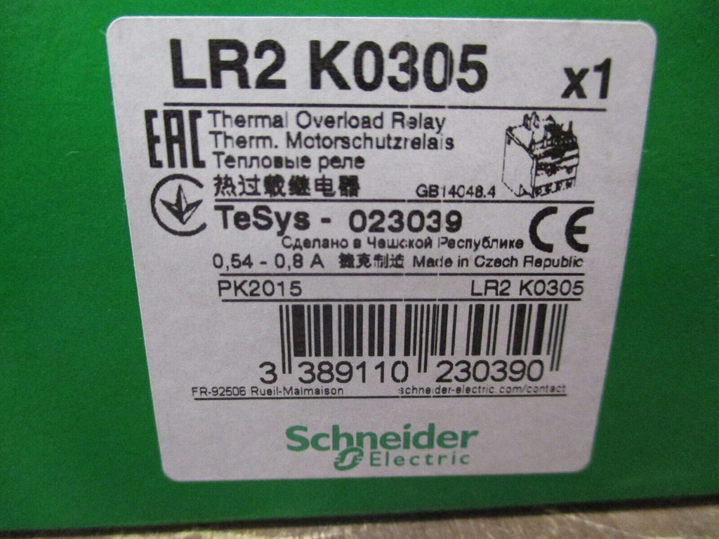 Schneider Electric Solid State Overload LR2 K0305 Trip: 0.54-0.8A New Surplus