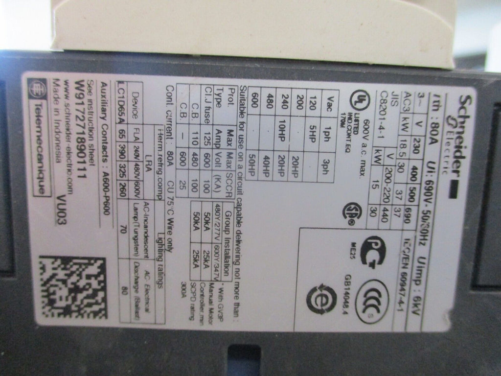 Schneider Electric Starter LC1D65A/GV3P 50 Trip : 37-50A 110-240V Coil Used