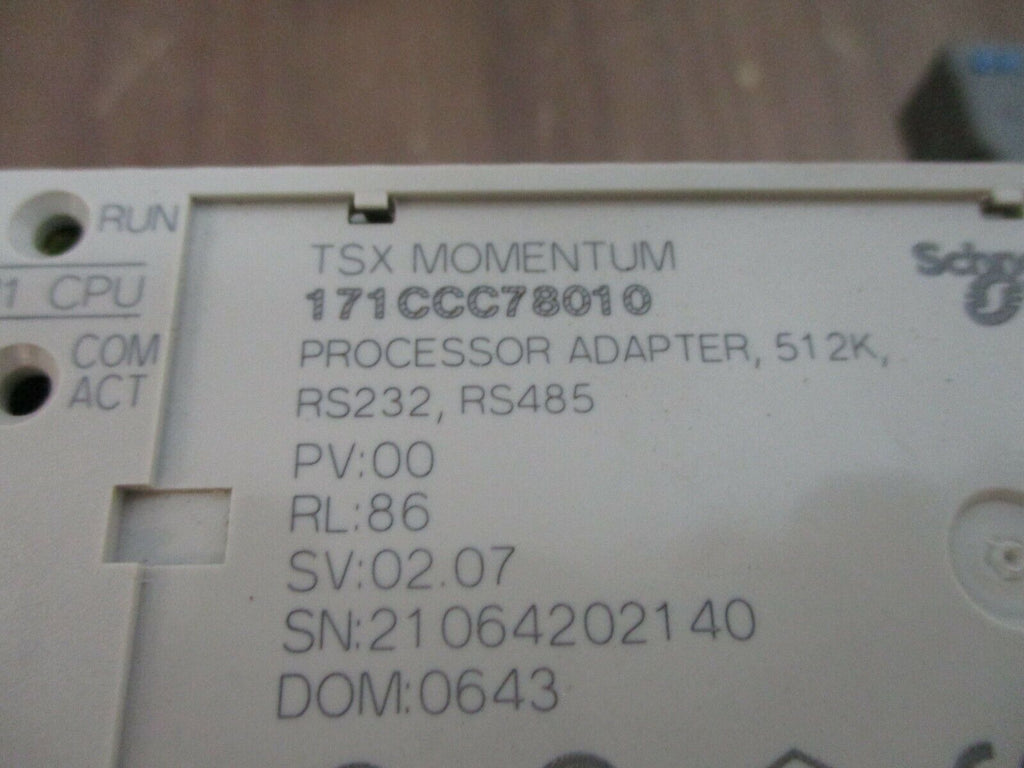 Schneider Electric TSX Momentum Processor w/ I/O Base 171CCC78010 512K Used_x000D_ Condition: UsedMPN: 171CCC78010Brand: Schneider Electric Schneider Electric TSX Momentum Processor w/ I/O Base 171CCC78010 512K Used Condition: UsedMPN: 171CCC78010Brand: Schneider ElectricSchneider Electric TSX Momentum Processor w/ I/O Base Part #: 171CCC78010 512K RS232, RS485 Modbus Plus Adapter Used Loc: 14I2-18