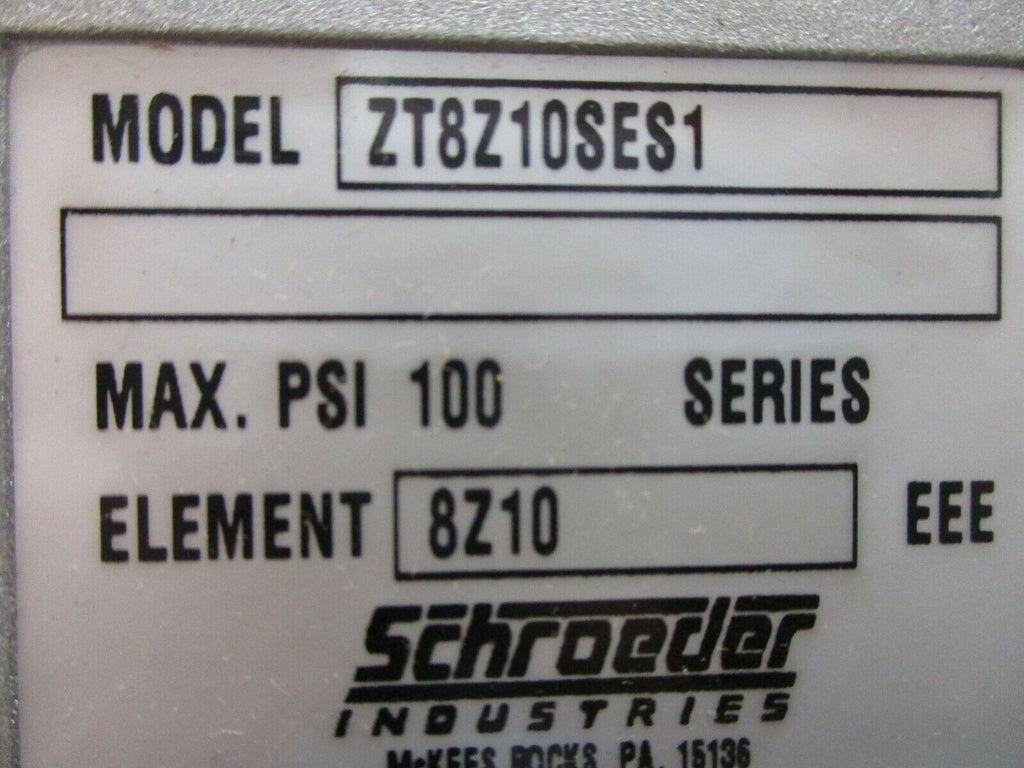 Schroeder Tank Mounted Filter ZT8Z10SES1 100PSI Element: 8Z10 EEE New Surplus