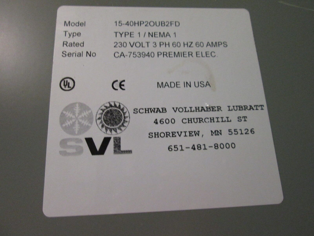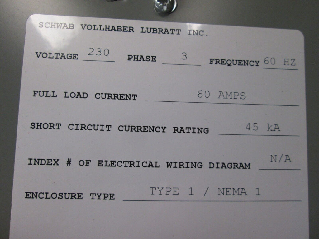 Schwab Vollhaber Lubratt 230V Bypass 15-40HP2OUB2FD 60A 230V 3Ph 60Hz Used