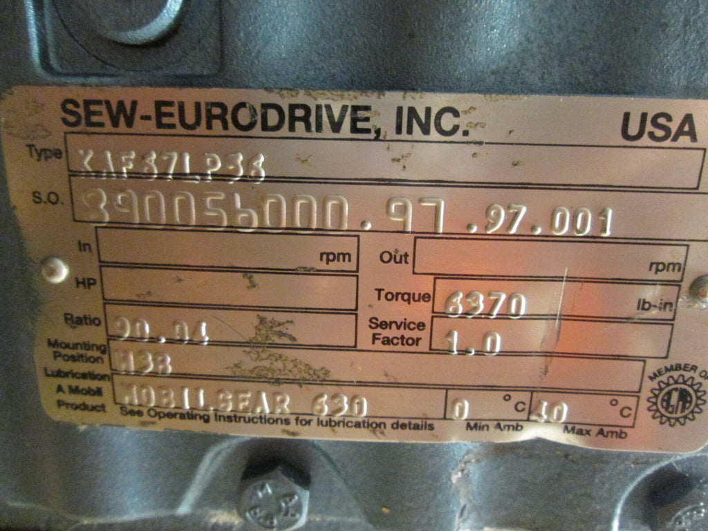 SEW-Eurodrive Gear KAF67LP56 Ratio 90.04:1 6370 in/lb Torque Used