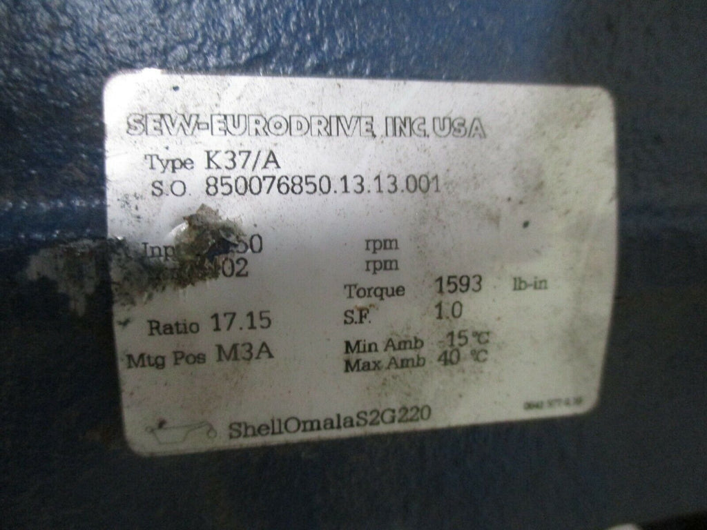 Sew-Eurodrive Gearmotor K97DT80N4BM61HRZ-KS 1700RPM Ratio 17.15:1 Used