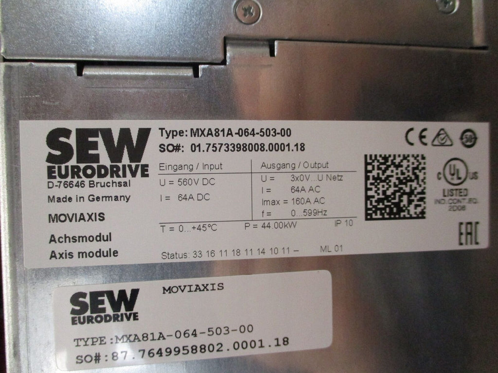 Sew-Eurodrive Moviaxis Servo Drive Axis Module MXA81A-064-503-00 44kW Used