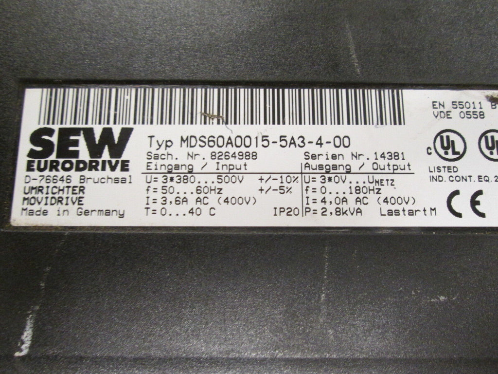 SEW-Eurodrive Movidrive MDS60A0015-5A3-4-00, *Missing Cover, No Keypad* Used