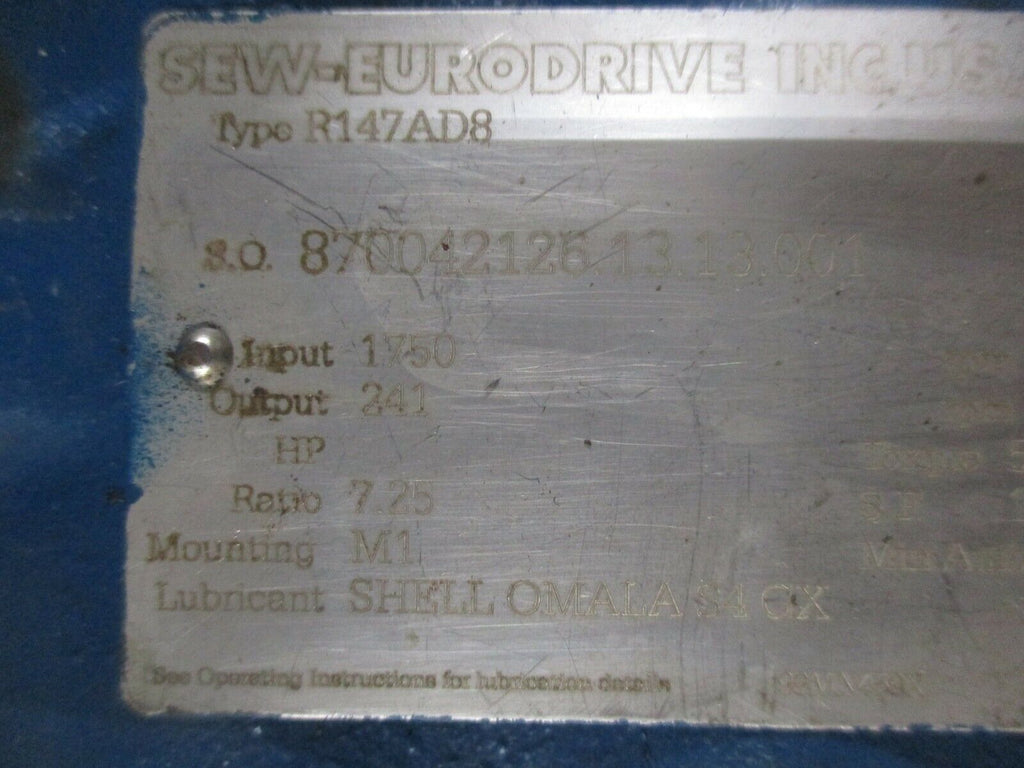 Sew-Eurodrive R Series Gear Reducer R147AD8 Ratio 7.25 241RPM Output Used