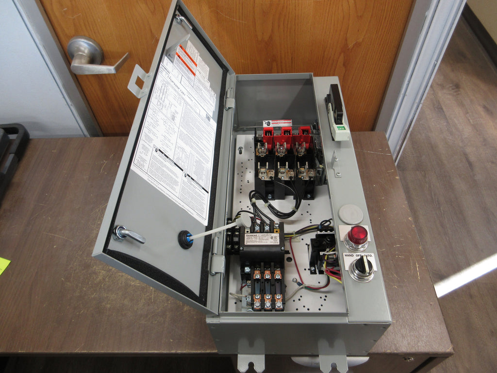 Siemens 3R Fusible Size 1 Combination Part #: 17DP92NF1281 120 V Coil Hand/Off/Auto Selector Switch Red On/Run Pilot Light New Surplus Loc: AB11-8486 / AB21E4
